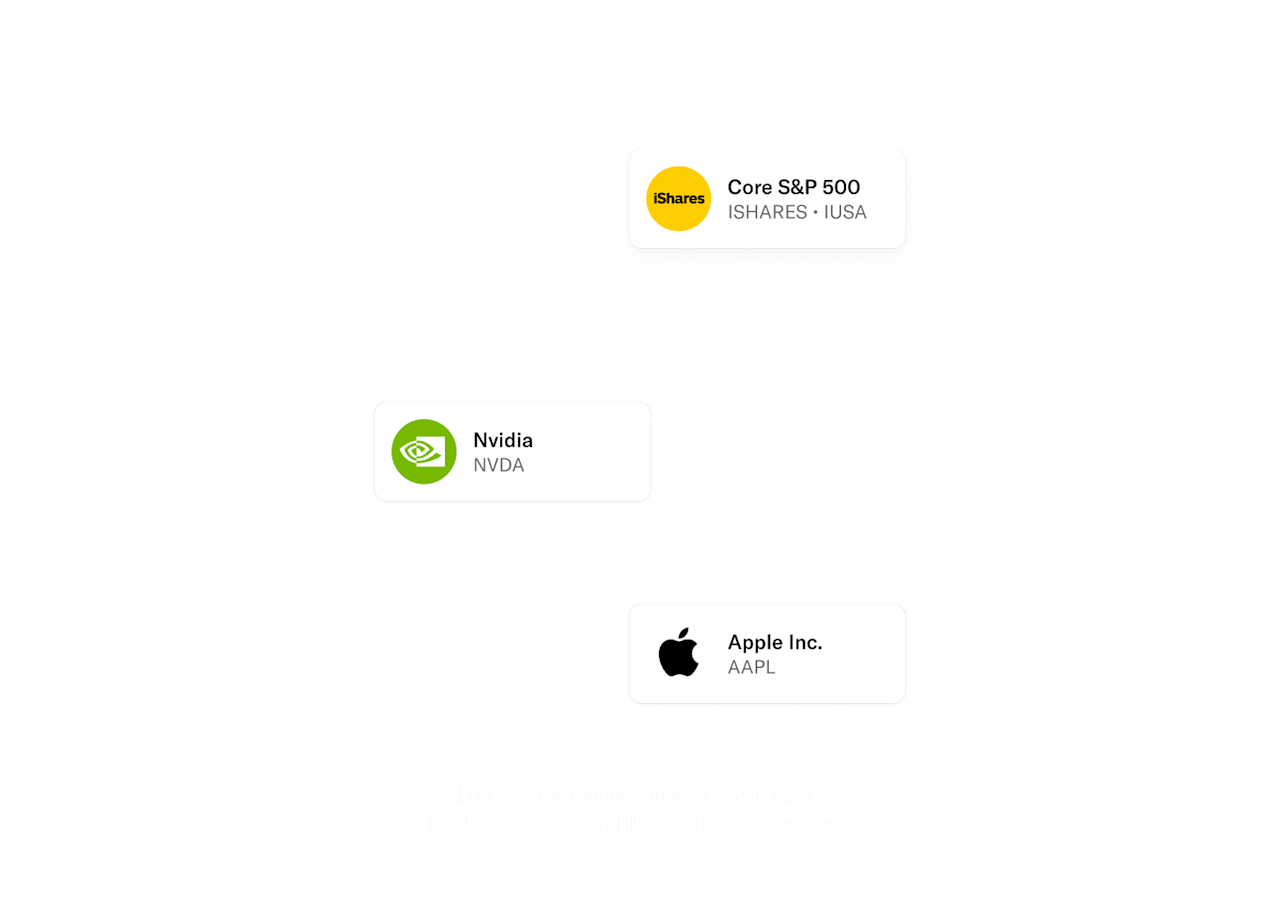 Diese Aussagen dienen ausschließlich allgemeinen Informationszwecken und stellen keine Anlageberatung oder sonstige Beratung zu Finanzdienstleistungen und Finanzinstrumenten wie Aktien, ETFs und Sofort-Fonds dar. Sie sind auch kein Angebot zum Abschluss eines Vertrags über den Kauf oder Verkauf von Aktien und ETFs. Aktien und ETFs können starken Wertschwankungen unterliegen. Ein Wertverlust oder Totalverlust des investierten Kapitals ist jederzeit möglich. Die dargestellten Werte sind fiktiv und dienen nur zu Illustrationszwecken. Die Zahl der verfügbaren Aktien und ETFs kann je nach Markt schwanken. Der Handel von Aktien und ETFs ist bei N26 gebührenfrei. Beachte bitte, dass Fonds-Emittenten ihre eigenen ETF-Verwaltungsgebühren direkt erheben können.
