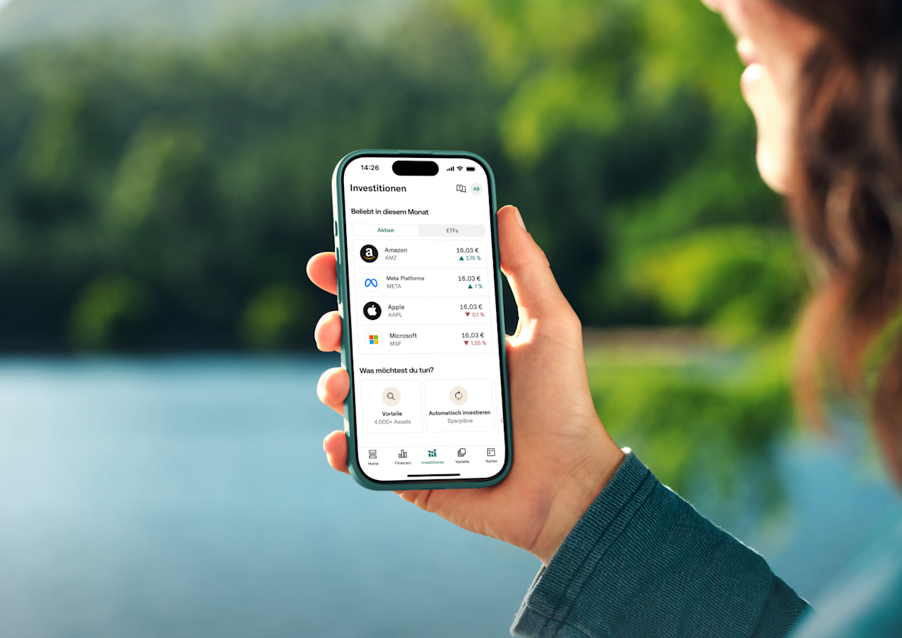 *Der Handel mit Aktien und ETFs über N26 ist gebührenfrei. Fonds-Emittenten können ihre eigenen ETF-Verwaltungsgebühren direkt erheben. Es gelten die in der N26 App angezeigten Asset-Preise.