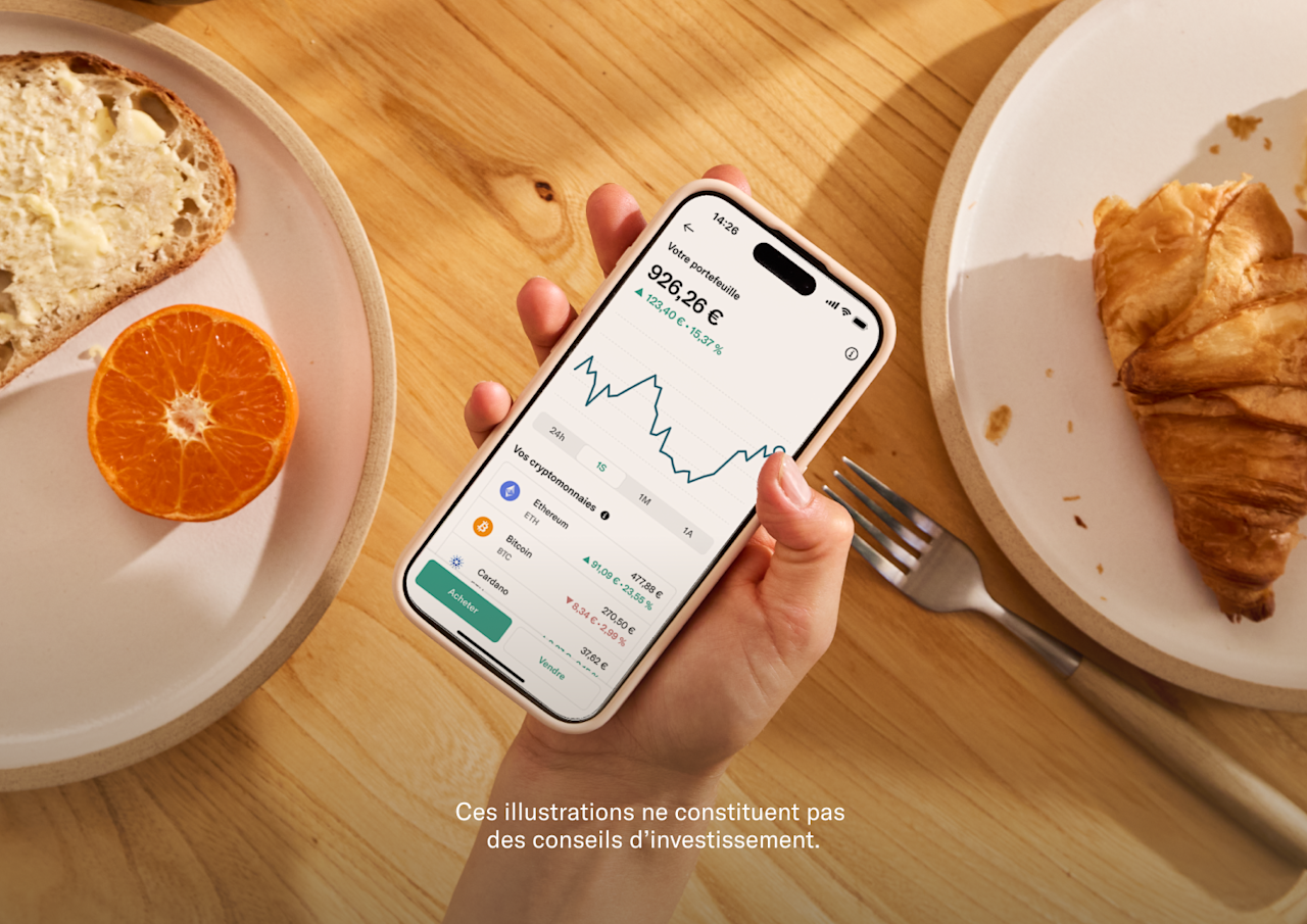 Assurez-vous de disposer des connaissances suffisantes avant de réaliser des opérations. Service de réception et transmissions d’ordres fourni par N26 Bank SE (Voltairestr. 8, 10179 Berlin, Allemagne RC HRB 271697 B). Exécution et conservation fournis par Bitpanda GmbH (Stella-Klein-Löw-Weg 17, 1020 Vienne, Autriche, RC FN569240 v), Prestataire de Service sur Actifs Numériques enregistré auprès de l’AMF sous le n°E2023-076 et de l'Autorité autrichienne des marchés financiers sous le n°FN423018k. Plan d’Épargne en Actions PEA